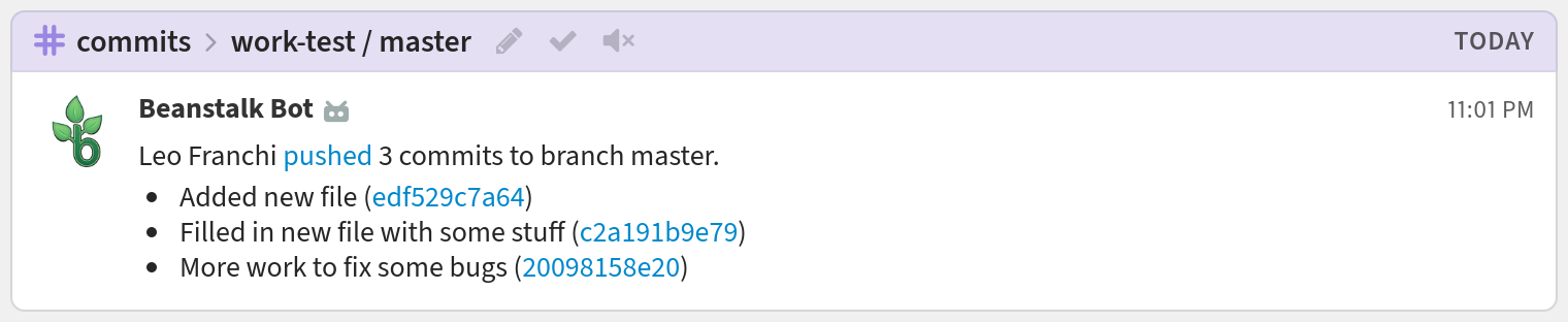 You're done! Your Beanstalk notifications may look like this: